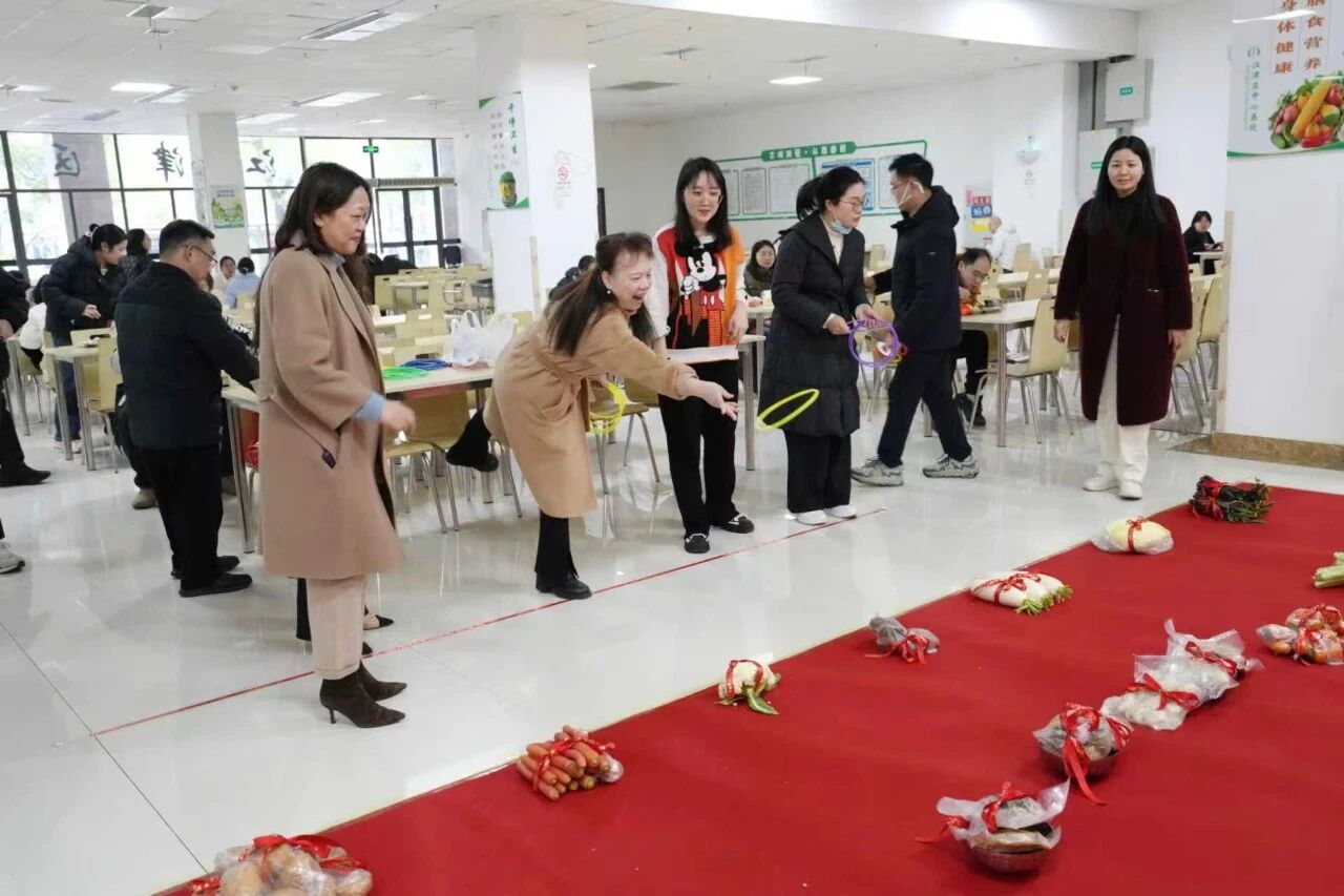 在职工食堂,医院干部职工们兴致勃勃地参加了套圈赢年货、投币挑战赛等活动,通过传统趣味游戏与互动体验,让职工感受新春民俗魅力,增进同事间的情感交流。大家还齐聚一堂,品尝了食堂精心准备的酥肉、芝麻圆子、腊肉等传统美食,感受到了浓浓年味。
