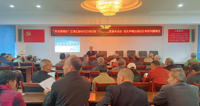 日前,我院泌尿外科党支部组织党员志愿者前往支坪镇白溪社区,开展“前列腺增生防治”健康科普讲座,将专业医疗指导送到社区居民身边,为中老年群体的泌尿健康保驾护航。健康科普讲座现场活动现场,医生志愿者结合..