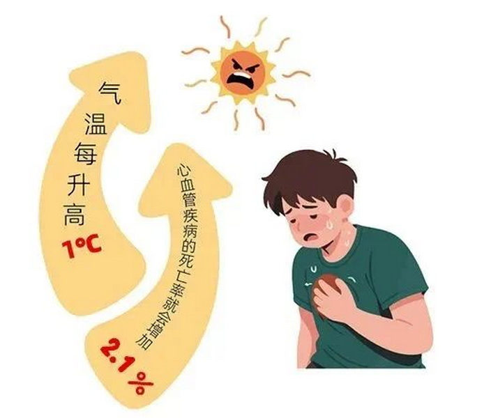 血液“分流”致心脏缺血:高温下人体需散热,体表血管扩张,更多血液流向皮肤,心脏供血被“偷走”。冠脉狭窄者此时更容易出现心绞痛甚至心肌梗死;