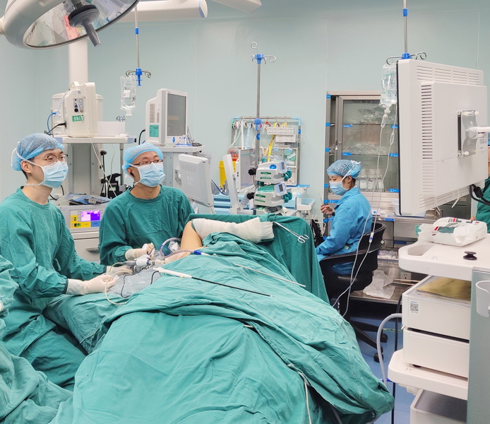 “由于年龄不大,患者对术后生活质量及形体美观期待较高。”乳腺甲状腺外科副主任(主持工作)、副主任医师张涛表示,传统乳腺癌手术虽能根治疾病,但会在乳房区域留下较长疤痕,一定程度上会影响患者生活质量和身心健康。面对这名年轻患者的迫切需求,科室团队经过严谨评估,决定迎难而上,采用目前国内前沿的单孔经腋窝腔镜逆序法进行手术。