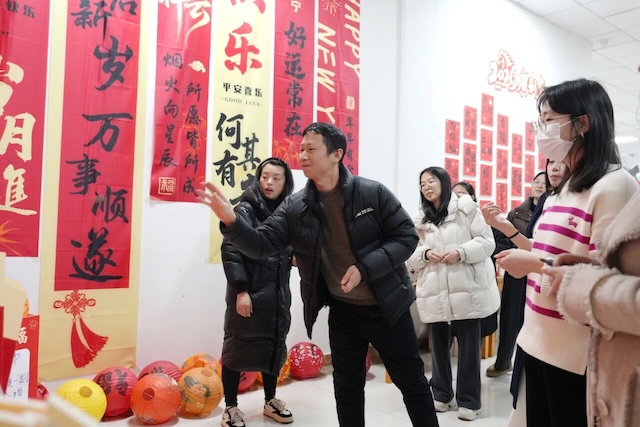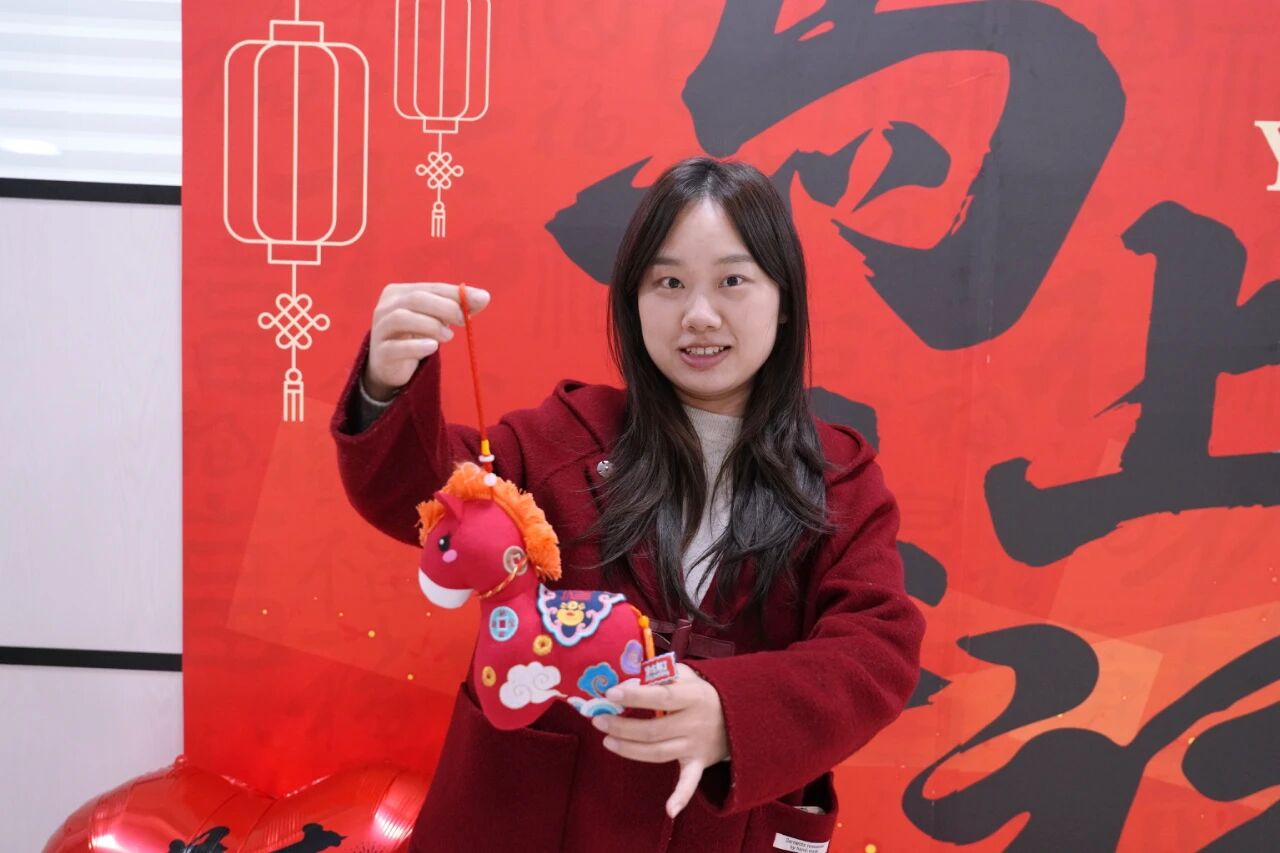 活动现场处处洋溢着喜庆的气息。在一面印着各种形状不一的“福”字展板前,职工们纷纷挥毫,用蘸满金色颜料的毛笔细细描摹。不一会,一个个饱含美好祝愿的“福”字跃然纸上,一笔一划间满是对新年的期盼。投币祈福的现场同样人头攒动,只听一声清脆的“叮当”声,投币砸中悬挂铃铛的干部职工赢得了小对联、布艺玩偶等精美小礼品。