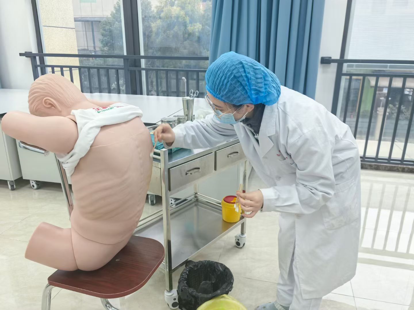 比赛中,我院指导的参赛选手在模拟临床场景中完成心肺复苏、创伤救治等多项实操考核,既展现了扎实的临床基本功、规范的操作技能和敏锐的临床思维,也彰显了敬畏生命、关爱患者的职业素养和默契协作的团队精神,得到评委的高度评价。