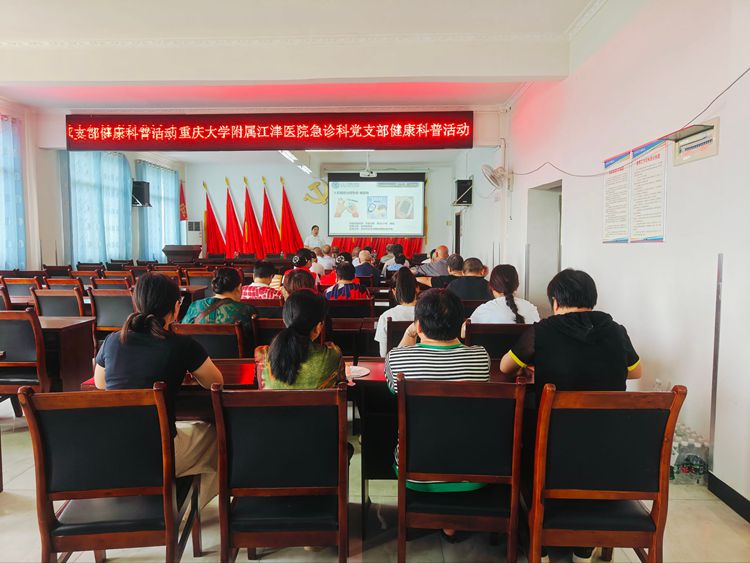 “心脏不舒服时,先别慌,记住这几个典型症状——胸痛、胸闷,可能还伴有左肩放射痛,及时就医是关键!”8月21日,重庆大学附属江津医院急诊科党支部的急救宣讲团队走进李市镇林家嘴社区,一场围绕“冠心病科学防治与急救技能”的健康宣讲活动在此温情开讲,把专业医疗知识和实用急救技能送到了居民家门口。